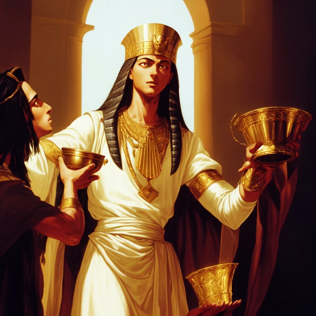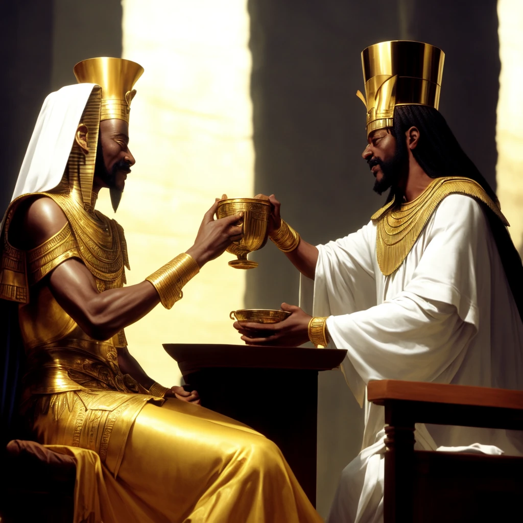 And Pharaoh's cup was in my hand: and I took the grapes, and pressed them into Pharaoh's cup, and I gave the cup into Pharaoh's hand.